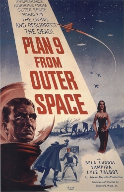 Background: Originally titled Grave Robbers from Outer Space, the film was full of multiple errors and continuity problems. Béla Lugosi was billed as a star, but had actually died before the film was made. Footage shot two years previous for another film used by director Ed Wood in the movie. It is often declared "the worst film ever made". The film has since become a cult classic and director Ed Wood received a posthumous Golden Turkey Award for worst director ever.