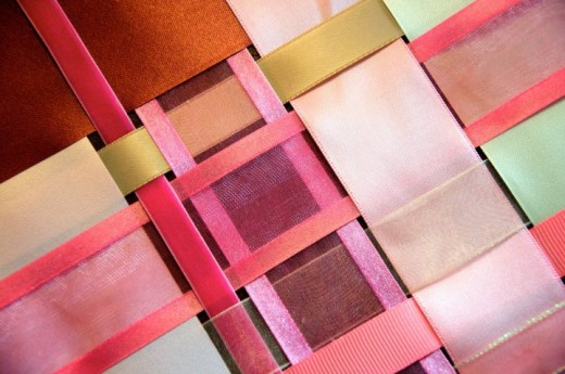 Have you ever seen a tablecloth made of woven ribbon? A precious friend of the bride's family spent a few hours carefully weaving ribbon for this table. Colors were selected to complement the overall color scheme. As I remember, this friend taped the ribbon at the edge of the table to hold it in place while she worked.