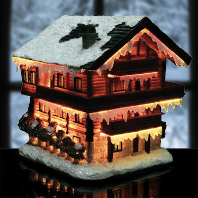 Painting your own houses can be really effective not to say individual and there are a few tips I can give you. All the houses from California Creations have droplets of fake snow arranged over the building, I have found that it is quite effective to leave these the natural plaster colour and paint around the patches leaving them stark and proud of the surface. Again with the trees you can keep your green paint dry and brush it on carefully but not completely. The green is technically underneath the snow but the effect is of a green conifer with snow on top. You can balance the green with the white depending on how heavy you wish to portray your snowstorm. Finally it is best to do the inside edges of the window frames first, then paint the walls and roof and then come back to finish off the outside frames of the windows where they touch the walls.