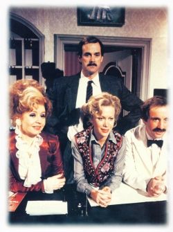 Photo above taken from my own Fawlty Towers DVD set and features main stars John Cleese, Prunella Scales, Connie Booth and Andrew Sachs