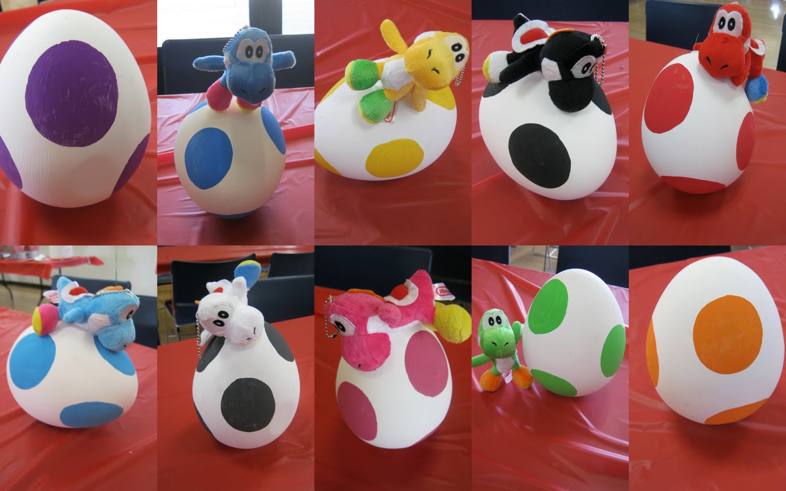 There Easter eggs are basically just white eggs with dots, however combined with the small Mario plushies, they make for a cool geeky Mario themed Easter decoration. - Super Mario Easter eggs