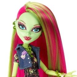 Like all the Monster High dolls, Venus McFlytrap is a fully pose-able doll and dolls you can pose are just more fun to play with. She is also the prettiest shade of green you've ever seen, and this doll is very good looking. You almost wouldn't believe she is the daughter of the Plant Monster, but she does have vines growing out of her skin, and that makes you believe it. Venus McFlytrap comes with a couple of her favorite things including Chewlian, her little pet Venus fly trap, her hair brush, a bag and her journal. The Mattel Company says that Venus is a safe toy for children ages three and up.