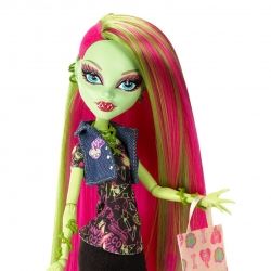 Venus is loud, and she is very concerned with the environment. She has a rather unique pet, it's a venus flytrap and his name is Chewlian. He can be pretty snappy, but Venus loves him anyway. This young Monster Doll wants everyone to know how important taking care of our world is. It's not a surprise that her favorite color is green, is it? She loves fresh water and lots of sunshine, in fact, she thrives on it. Her best friends at school are Lagoona Blue and Gillington "Gil" Webb.