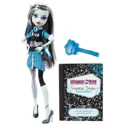 Frankie's best friends are Draculaura, Clawdeen Wolf, Lagoona Blue, Abbey Bominable, Cleo de Nile, and Jackson Jekyll. Since she is the youngest of all the Monster Dolls, she was only 15 days old when she started school there, she is a bit child like and naive. She is the most trusting of all the Monster High characters. Her dad made her a pet dog and she calls him Watzit!