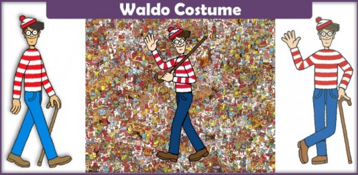 Waldo is an easy costume to put together. Check your closets, drawers, and attic to see if you have a striped white and red shirt, and some old brown boots. While you are at it, try to find a red and white stripe cap hat or just a white one. Draw red lines on it look like Waldo's.