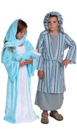 The only costume which requires a specific colour is for Mary, traditionally Mary wears blue and it is a good idea to keep up the associations with Mary and the colour blue as it immediately identifies her to the audience and therefore as she is the centre of the play, all the other characters can be worked out easily from their identification with her.