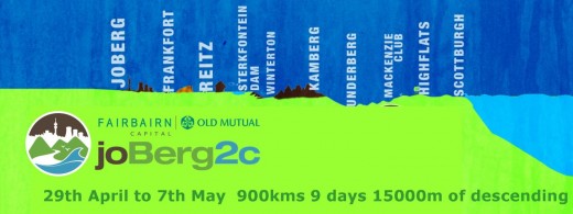 The joBerg2c mountain bike race is a 9-day event that takes rides from Heidelberg, just east of Johannesburg, to Scottburgh on the KwaZulu-Natal South Coast. The route is roughly 930km in length and incorporates the sani2c route, parts of the Berg and Bush route and the Bielie Mielie route. The various sections of single track on the route are linked up using district and farm roads.