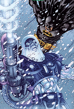 In "Villains United #1", Mr. Freeze froze everyone inside of a courtroom and used a frozen man as his chair. In this issue, as he lounges on the frozen man, is approached by the villain named Calculator who asks Freeze to join the Secret Society of Super Villains. During his time with the group he approaches Nyssa al Ghul and offers her a sub-zero machine in exchange for the use of her own Lazarus Pit. He plans to place Nora inside the Pit and hopefully bring her back to life. He attempts to restore Nora to life without waiting for the adjusting needed in the pool chemicals. To his delight, she is still restored, but it wouldn't be fitting if she was exactly the same as before. She returned to life as the twisted Lazara and escapes while blaming her husband in the process and estranging him in the process. Throughout the comics, like many of the villains he is frequently imprisoned in Arkham Asylum when apprehended by Batman. However, Arkham actually has a specific cell for him to accommodate his needs in terms of temperature.