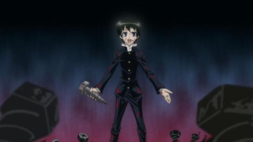 Yet, he does not seem overly concerned about his goals. As the heroes and villains clash, Kumagawa easily resigns so that he can torture Hitoyoshi, and through him, Medaka. His mind seem absolutely beyond salvation, and his powers are nothing to laugh at either. Kumagawa possesses the ability to remove things from reality, whether physical damage or a persons eyesight, even his own death. He claims that he would be able to remove the entire world if he so wished, and it almost seems plausible that he could . The only reason he does not win from the beginning, as he could presumably remove the heroes from existence, is the fact that he is more interested in the mental plane than the physical. He instead tries to trick Medaka into giving up on her morals by defeating him instead of converting Kumagawa or making him happy.
