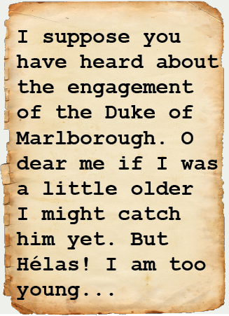 See the quotation on the right. This is what Gladys wrote to her mother when the duke's engagement was announced.She was fourteen years old.