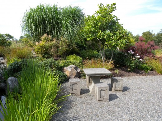 A Chinese garden is serene but not static or lifeless. There is movement and sound and everything is placed to emphasis it's beauty,Every plant is endowed with yin or yang depending on it's qualities and an English cottage garden filled with a rich variety of flowers can be just as lovely in a different way to one where a stone or single bloom is used to create a visual impact.