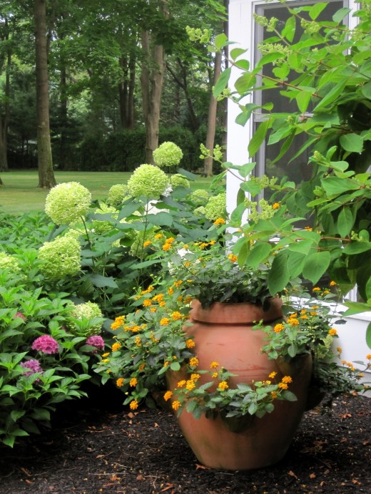 Earth - Earth is suggested in our paving and pathway material such as bricks or stone pavers. The real earth is not shown in a Feng Shui garden since it is covered with plants but our soils should be healthy and well cared for. Other ways to include this element in your garden is to use pots or containers of terracotta.