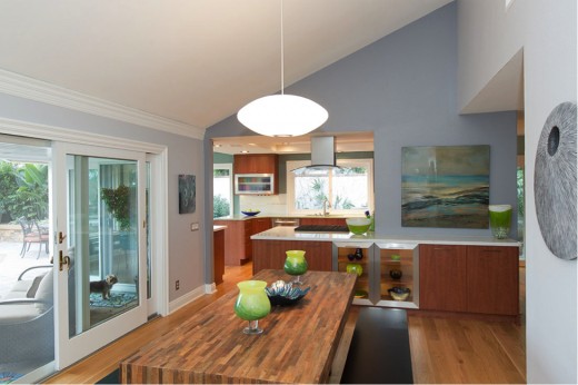 The key to contemporary design is to maintain clean, uncluttered lines. Placement of furniture should allow traffic to flow freely through the room without awkwardly routing guests through conversation space. To help ensure that surfaces such as coffee tables and end tables remain clear, consider including built-ins such as bookcases or media consoles, such as the ones shown below made by Sea Pointe Construction for a Laguna Niguel home remodel. For multifunction living rooms, including doors on these built-ins can allow you to hide electronic components and other potentially unsightly but practical items when you’d prefer the room to have a more formal feel, while keeping them easily accessible for daily use. Smart storage will allow you to have the things you need on hand without making your living room feel cluttered.