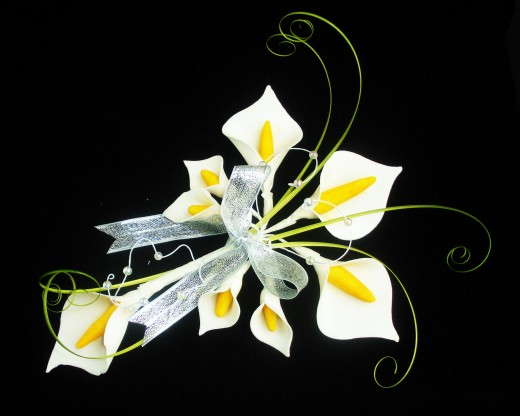 Calla Lilies are another traditional wedding cake flower, and a simple spray of 3 or 5 calla lily fondant flowers on top of a wedding cake makes for a stunning cake topper. For more drama have the lilies in contrasting colours such as black and white and add some feathers or leaves for extra effect.