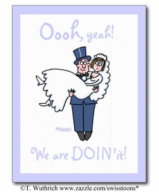 I originally drew this fun couple for use on a Honeymoon Congratulations card, but a Zazzle friend suggested it could be better used on invites and even elopement announcements. She was right! What is it about these two that English, Irish and Aussie brides-to-be find so appealing? Any idea?