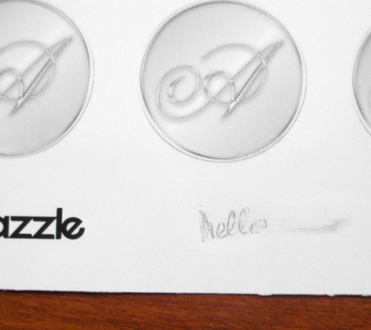 Many designers made gift tags using Zazzler stickers. Since it is so glossy, I worry about its writability. I used a regular ball point pen and wrote "hello" on the surface. It actually took me a couple of tries to get some ink on. Oh yeah, and it smears.