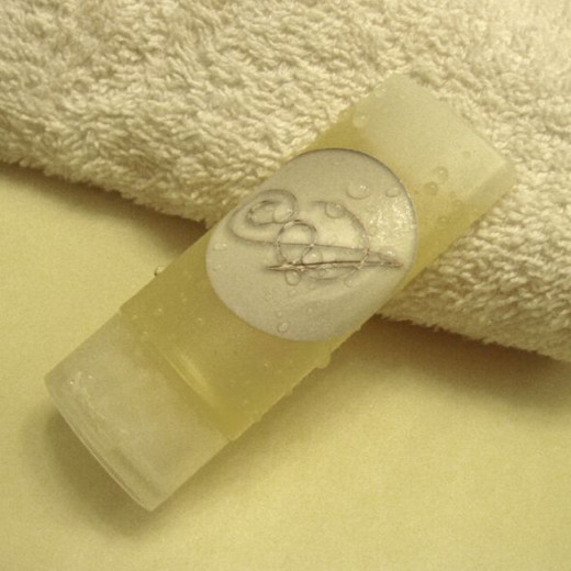 I think someone raised a question of whether Zazzler stickers can withstand water and moisture in general. Well, here's my little experiment. I placed one of my monogram stickers on a travel size shampoo bottle.