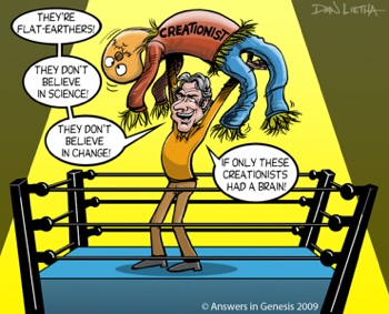 "Genesis, ha! Talking snakes, big leaky boat, drunk Noah, every species of every animal and dinosaurs."