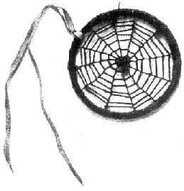 Webbing: The webbing was made from sinew string (derived from animal tissue) and was woven to take the form of a spiders web. It was this webbing that would either trap dreams or let them flow through the holes. Some dreamcatchers had 8 points to represent spiders legs.