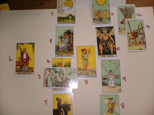 Numbers twelve and thirteen are not always used. They further explain the outcome, and you would tend to use them if number eleven were an ace, as all aces signify new beginnings.