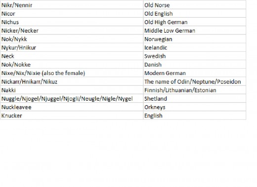 Originally derived from the old Teutonic word nikwiz/nikuz (from the root nig = to wash), It is a water spirit which often takes the form of a horse to try to lure people to their deaths in the waters of lakes, lochs, rivers (or even the sea) where they are said to live. They are shape-shifting entities who can take on other forms, as well. There are, also, creatures of similar types in other parts of the world.