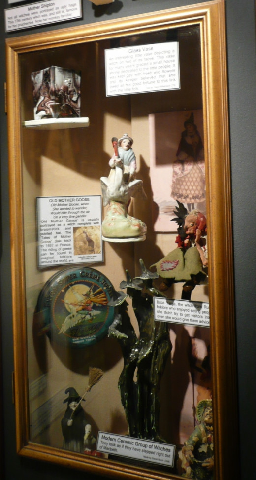 The Museum of Witchcraft in Boscastle, Cornwall, England has a fascinating display of vintage witch paraphernalia, which includes Old Mother Goose décor, vases and dolls as pictured above.