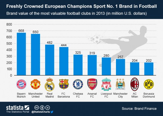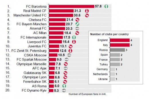 These are considered to be the most admired european clubs with huge fan base all around the word.