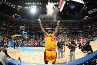 Michael Jordan had a ritual where he'd stop by the scorekeepers table and grab some chalk and clap his hands. It was subtle, it was professional, like a player shaking an opposing coach's hand. Lebron, trying his best to be like Mike, or rather, out do Mike, turned the chalk into a production straight out of WWE wrestling. It's all about the show for Lebron, rather the attention. For this reason alone, LBJ will never be considered in the class of Air Jordan, because the one thing Lebron lacks, is class.