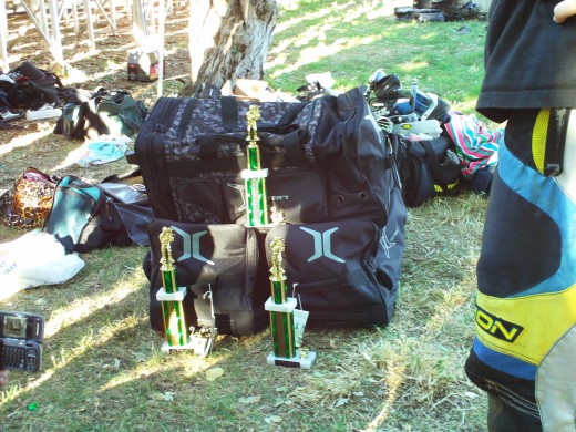 The first local tourneys we entered were organized by a couple fields, one being Midway. It was called NCPS - the Nor Cal Paintball Series. Our first tournament was at Antioch Paintball Park, in Antioch. And it was quite the experience. Intense. Crazy. And what none of us expected, we made it to the finals - and second place! We played the next NCPS event, which didn't go as well as the first one. Not bad, but no fancy trophy. I managed to convince my cousin, the person who got me started, to join us for the final event. Lots of fun, but again, none of that beginner's luck.