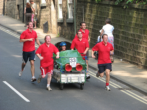 Since these are usually events to raise money for charity, the rules are a little looser. Only 4 people usually push the bed, which still has to be decorated and on wheels.