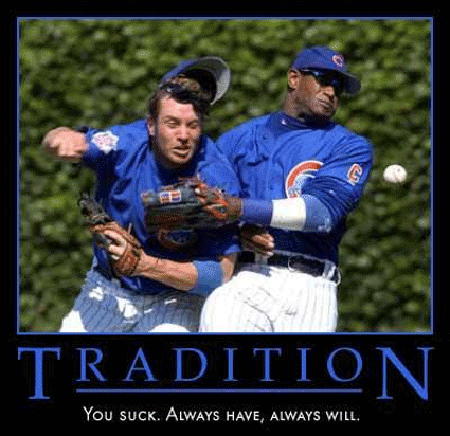 I am a diehard White Sox fan and absolutely abhor the Chicago Cubs. I hate everything about them as a franchise, specifically the fact that they are universally beloved simply because they suck. It has always been my contention that losing…and losing often…should not be a reason for adoration. Yet the “Loveable Losers” enjoy support across America for reasons I simply do not understand. Part of it is the Harry Caray factor, part of it is that their games are nationally broadcast on WGN, and part of it is the “mystique” of Wrigley Field. Mainly though, I think many people just feel sorry for them and Americans have a propensity to root for the underdog. Well, there is no greater perpetual underdog than the Cubs; and that is not meant as a compliment in any way, shape, or form.