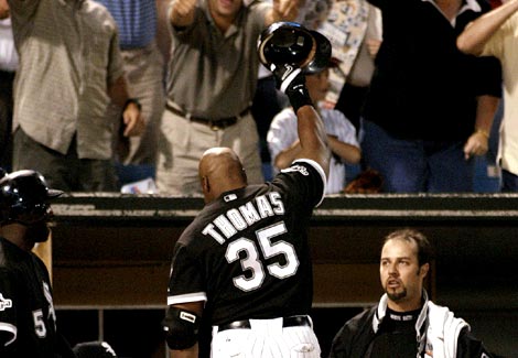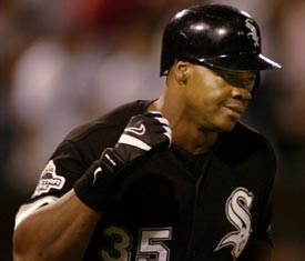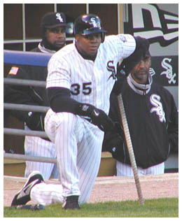 Frank was known to be somewhat of a whining baby (hence his other nickname: The Big Skirt, which I have frustratingly called him on numerous occasions, even as a huge fan of his). He was also very much interested in his own statistics, though not necessarily to the detriment of his team; but it did create the perception that he was a “me-first” player. I think this is a huge part of his icy relationship with Ozzie Guillen from their days playing together, and why Ken Williams has (or at least had, based on the video to the right) such a distate for Frank. But Big Frank did lead by example in terms of his hitting preparation, and was notorious for jacking 1st inning homeruns to get the team going.