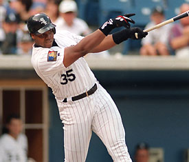 This article also discusses Sammy Sosa's fall from grace as a baseball and fan hero, based on his perceived attitude and the rumors of steroids; story about Kerry Wood smashing Sosa's boombox included. - Frank Thomas Yahoo! Player Card