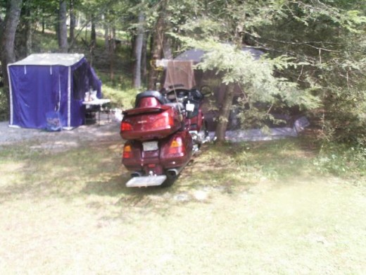 For those that are serious about motorcycle camping , many manufacturers offer pop up campers that are either small enough or specifically designed to be towed behind a motorcycle. These lightweight pop up motorcycle campers can fulfill even the most demanding of motorcycle campers. We have been towing an Aspen classic behind our Goldwing for the past five years now. Most of these motorcycle campers sport an off the ground sleeping area and many even include a large dressing area.The Aspen classic that we have has a cargo area under the pop up camper that is used to carry clothes and all our other camping gear such as cooking equipment,lanterns, chairs, tables and even a screen room. traveling by motorcycle has always been one our favorite activities and the pop up motorcycle camper has enhanced our experience many times over. If you enjoy traveling by bike and you are one that enjoys camping and being outdoors you may want to check in to the motorcycle campers available on the market today.