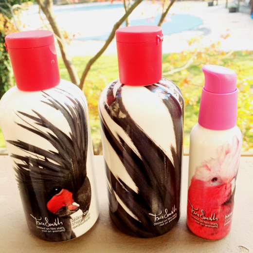 Each bottle is decorated with drawings of different exotic, gorgeous tropical birds. That makes for cute packaging in terms of holiday gifts!