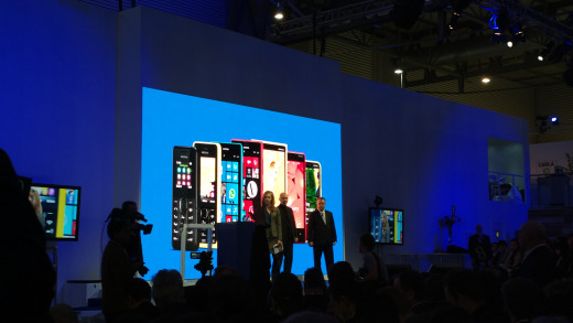 After the press announcement of the Nokia 105 and 301 along with the new Lumia 520 and 720 everyone poured out to the rest of the booth to view the stands where the phones were available to play with, along with Nokia staff to demonstrate Music, Here Services (Maps, Navigation and Transit) along with Photography and lenses, there were also a number of accessories available to view and try.