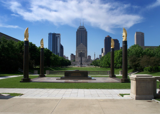 The Indiana War Memorial Plaza Historic District is home to over twenty acres of monuments, statues, sculptures, museums, parks, and fountains in the heart of the city.