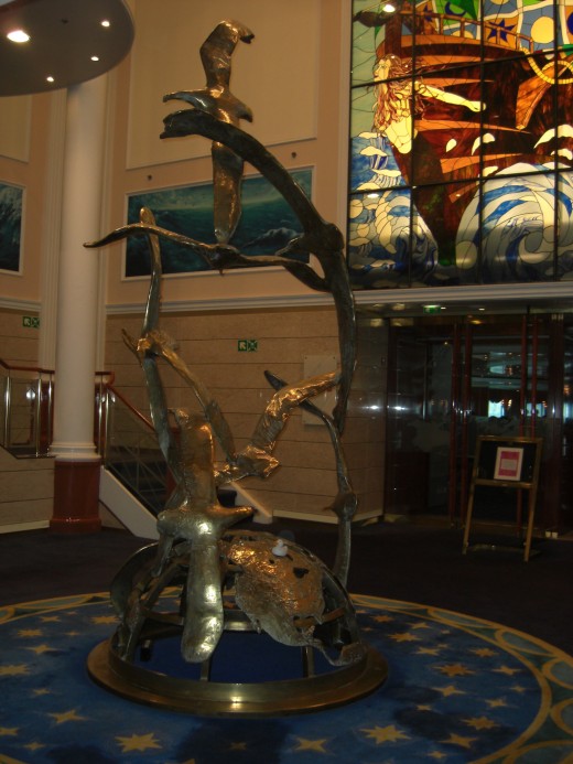 These were all in all excellent, and included a Body Spa, swimming pools, an ice-cream bar, a gymnasium, a basketball court, a jogging track, an art gallery, a golf driving net, a casino, shops, a kids corner, a chapel, a library, a boardroom, hot tubs and a superb observation lounge at the back of the ship.