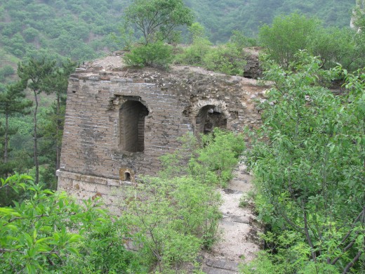 There are numerous places to visit the Ming Dynasty Great Wall of China near Beijing, ranging from the completely rebuilt, absolutely touristy section at Badaling (sometimes derisively referred to as the "Disneyland Great Wall") to crumbling sections of the Wall that are off-the-beaten path such as the lesser-known section at Yaoziyu a couple of hours outside of Beijing. Named after the 800-year old village there, the Yaoziyu Great Wall of China is a fantastically beautiful but somewhat dangerous part of the Wall that is rarely seen by visitors. Situated to the west of the Great Wall at Huanghuacheng, this section can be reached by walking along along path to a pass that allows relatively easy climbing up on to the Wall itself. Walking to the east from this pass will take you on the the Wall at Huanghuacheng, while walking back to the west is the section known as Yaoziyu. It is a steep climb either way, but the climb up on the Yaoziyu side is particularly steep. Once at the first guard tower, visitors face a rather perilous walk along a narrow section of the Wall that is approximately 18 inches wide and 10 yards long with a big drop-off on either side that could easily be fatal if you are unlucky enough to fall off of the Great Wall there. This part of the Wall is definitely not recommended for those with vertigo or drunkards! (Save the drinking for later when you get back down off of the Great Wall.)