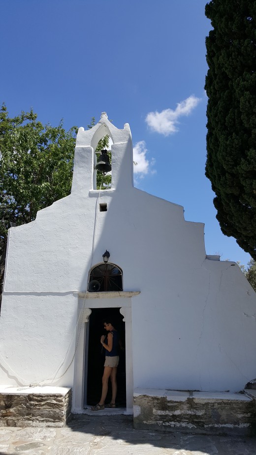 In what had been Ursulines School at the top of the castle hill we had coffee looking out over Naxos town – a lovely place to chill in the heat of the day.