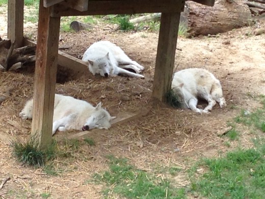 A hike up some ramps. We saw some cool white wolves, one really up close. We also saw some Grizzly bears but missed the Elk as they were not in the enclosure.