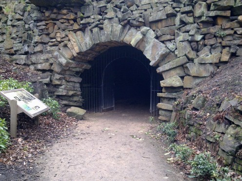 A notice board informed us that the trail is called Cunnery wood. The tunnel was built on the instructions of Anne Lister one of the previous owners. Although a very romantic setting it was built to bring water from the adjacent Cunnery woods to supply the waterfall and ponds which are on a lower level.