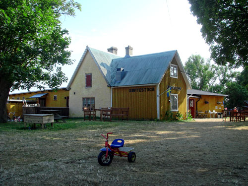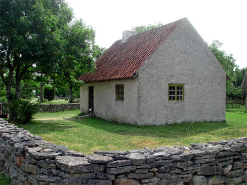 Gotland is a house drawn by a kid. Every building (granary, henhouse, watermill, bell tower or house) has a sloping roof. Dwellings are made of wood and stone. Chocolate colour beams are paired with ruby red slates, ochre with black, burgundy with green blue, mauve with brick red… The houses that are better looked after have wooden lacework to finish off the edges, chairs set in circle on the lawn and a patio area just outside the front door.