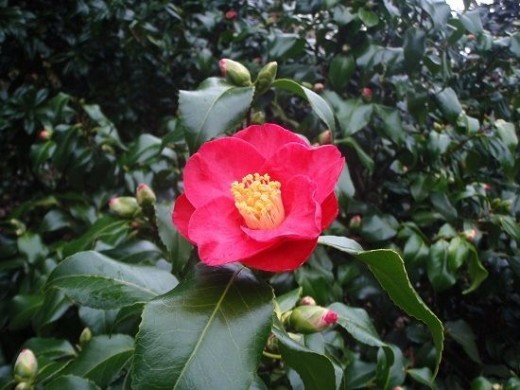 I have a red camellia in my back garden that is ready to burst into bloom by the end of March in time for Easter. Some camellias actually bloom in January in the right conditions. It had an off year in 2014 and there was only one flower !!!