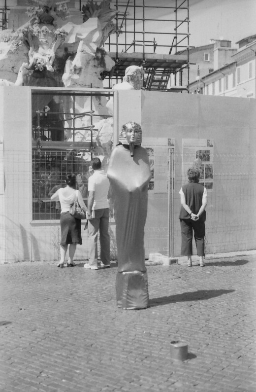 Street Performer in front of Gian Lorenzo Bernini's "Fontana dei Quattro Fiumi" at the Piazza Navona